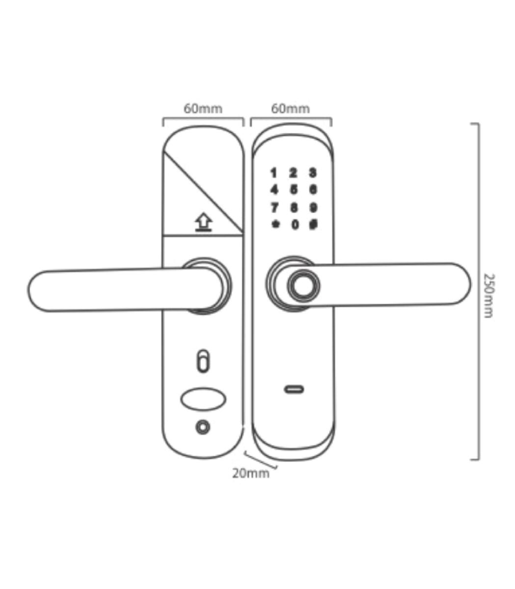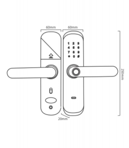 + Kích thước thân khóa ngoài: R 60 x C 250 x D 20 mm