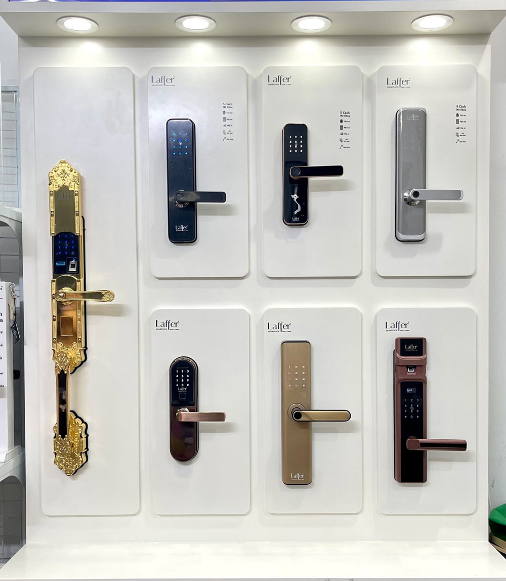 Hiện tại bên công ty em có rất nhiều các dòng khoá cửa “5 in 1” = Vân tay, mật mã, thẻ từ, chìa khoá, mở qua điện thoại” dành cho các hệ cửa như cửa cổng ngoài trời, nhôm xingfa, nhôm các hệ, sắt hộp, gỗ, cửa nhựa giả gỗ, cửa nhựa lõi thép, khoá chuyên cho phòng ngủ, khoá kính cường lực, khoá khách sạn. Quý khách chỉ cần nhắn tin và cho em ảnh cửa, em sẽ tư vấn khoá thế hệ mới nhất, tốt nhất và chi phí thấp nhất, hihi.